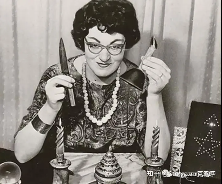 注释4:Doreen Valiente朵琳·瓦利恩特(1922-1999)来自英国伦敦的巫师,她从小就发现自己具备特殊能力(通灵/看见神奇的幻象),她帮助加德纳建立了加德纳派威卡,撰写了其核心的宗教仪式内容;此外帮助推动解除长达2个世纪的“巫术禁止令”法案。朵琳瓦利恩特是上世纪中期异教运动发展的关键人物,也是现代威卡的先驱之一,被誉为“现代巫术之母”。